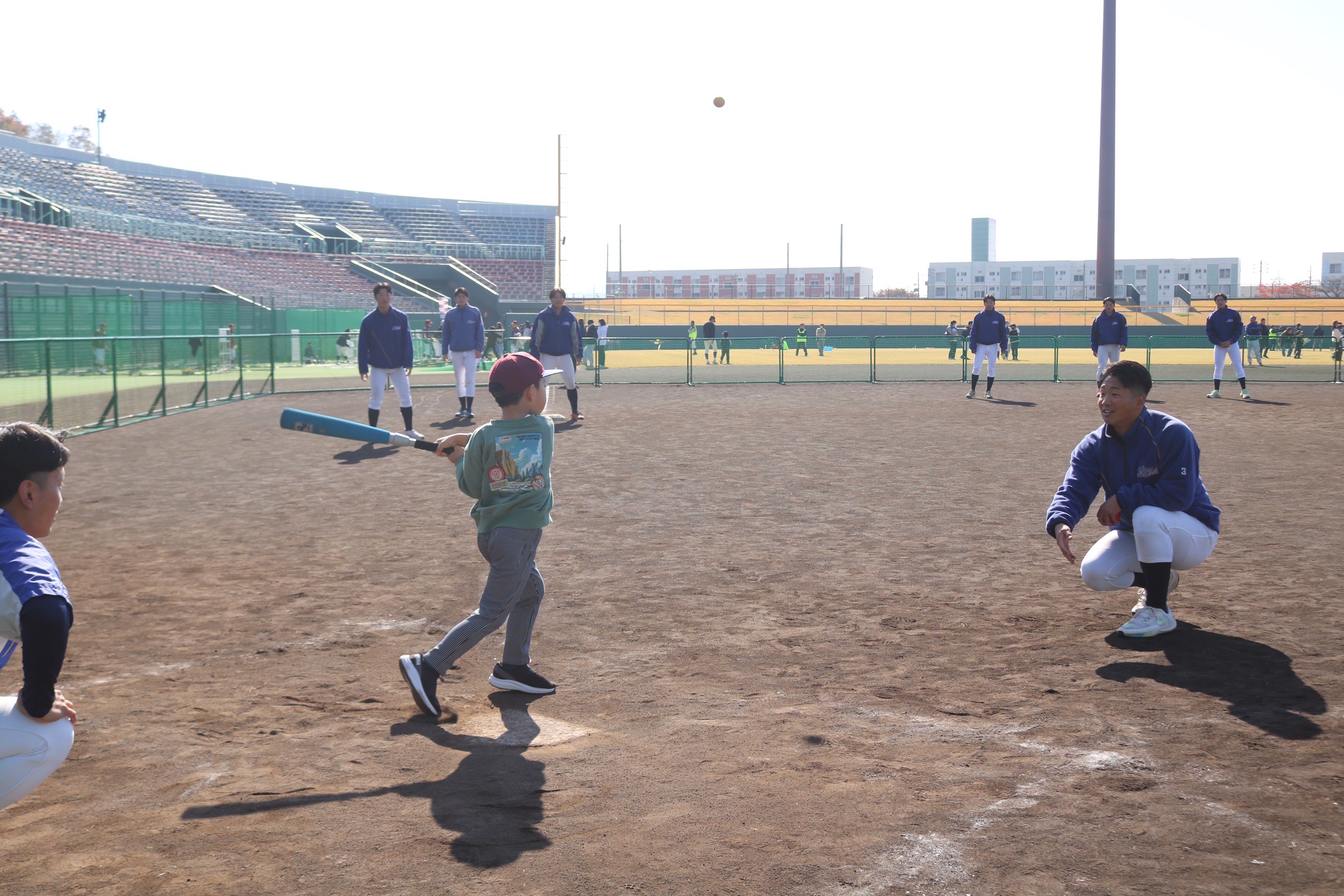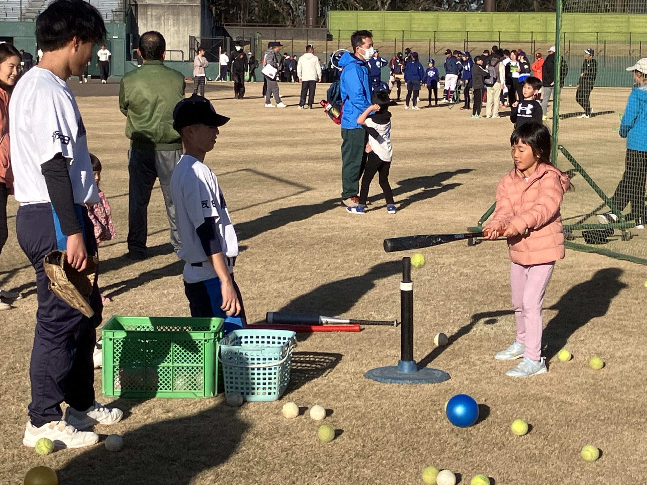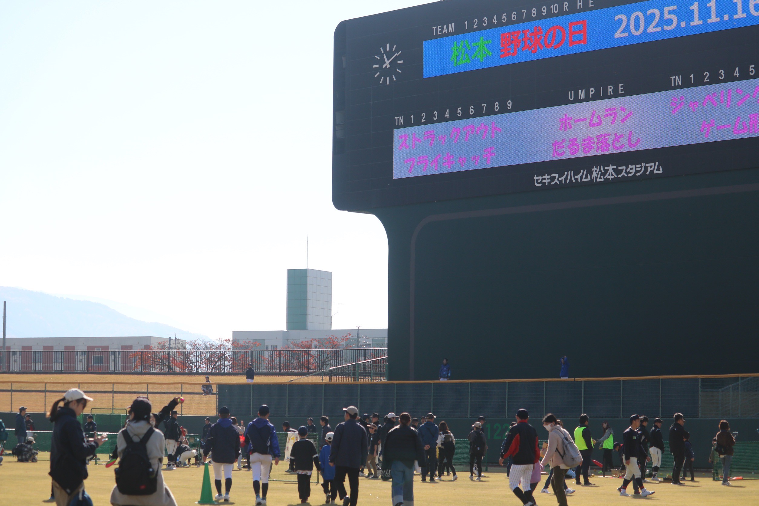 11月16日(日)、セキスイハイム松本スタジアムで「第5回 松本野球の日」を開催しました。だるま落としやホームラン打ち、ストラックアウトなどのアトラクションを通して、野球の楽しさを体験。子ども346名、大人315名が参加し、運営は高校生約200名・大学生約50名が行いました。