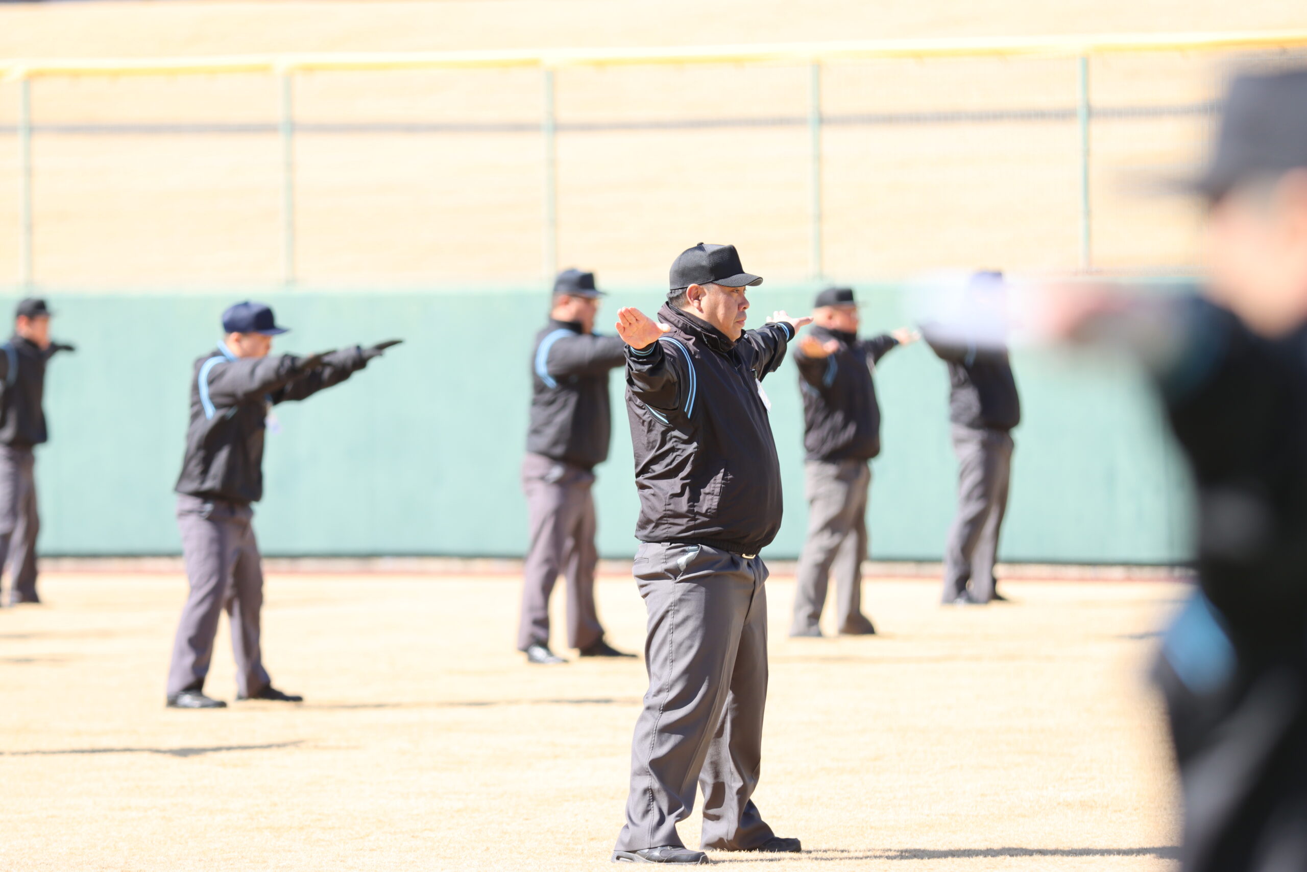 講習会では、ジェスチャーの基本、投球判定、2塁盗塁や3塁でのフォースプレイ・タッグプレイ、4人制メカニクス、内野の総合判定演習など、実践を重視した内容で研修が行われました。