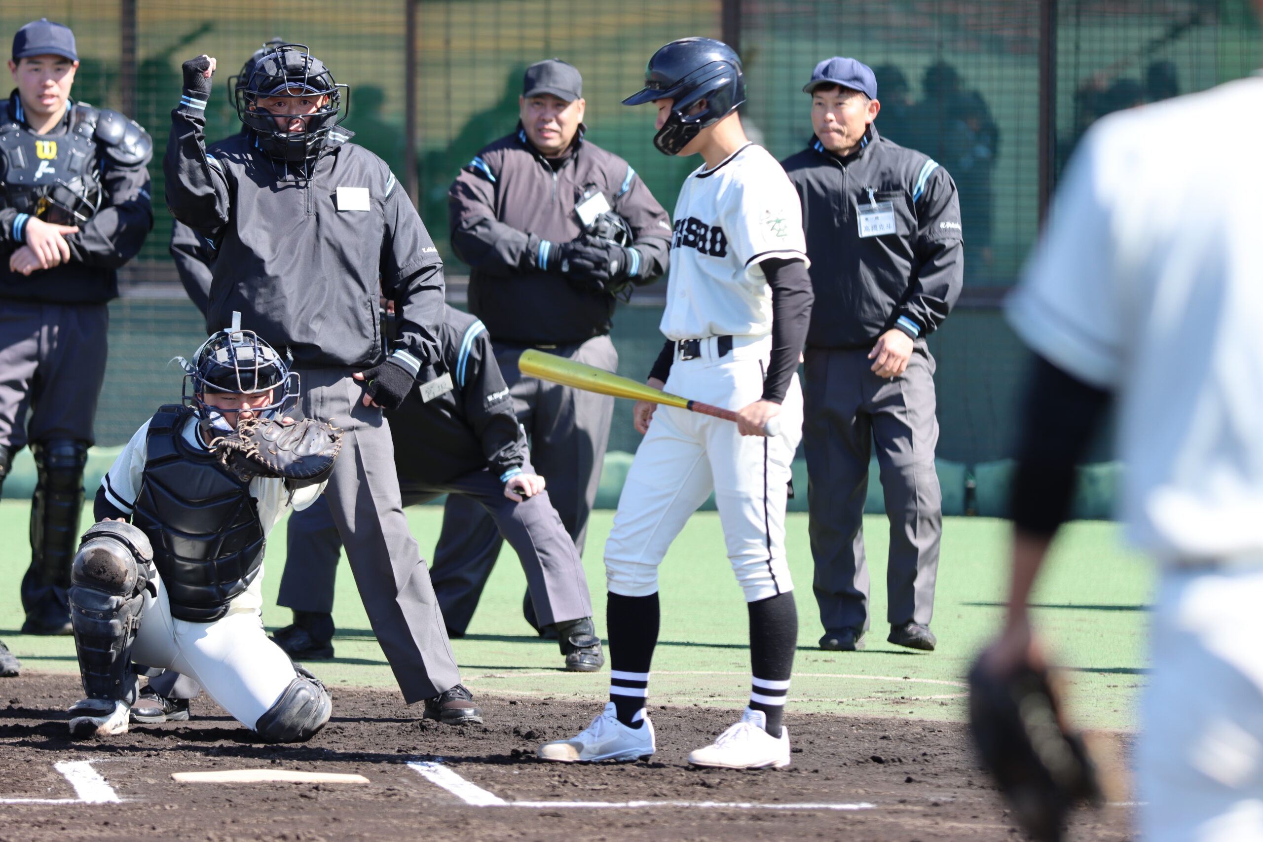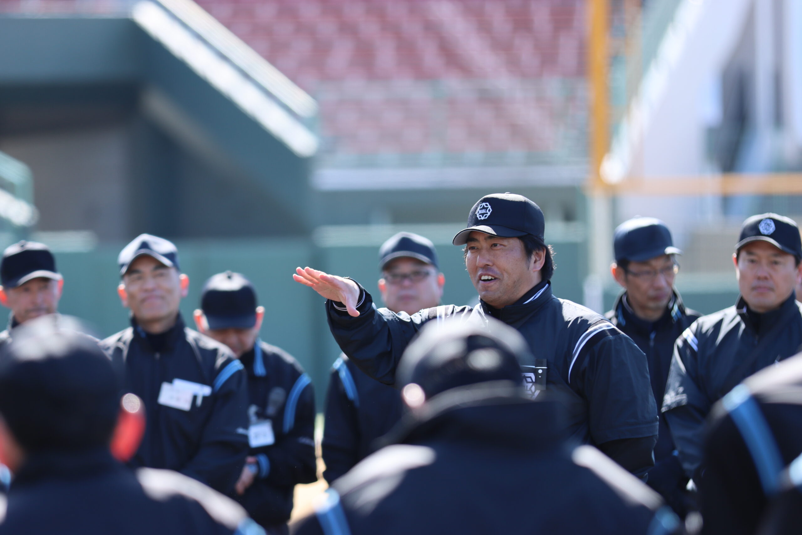 講師には、日本学生野球協会から派遣された 佐伯謙司郎さん(東京六大学野球連盟審判員)、御手洗悠さん(東京六大学野球連盟審判員)をお迎えし、ご指導をいただきました。